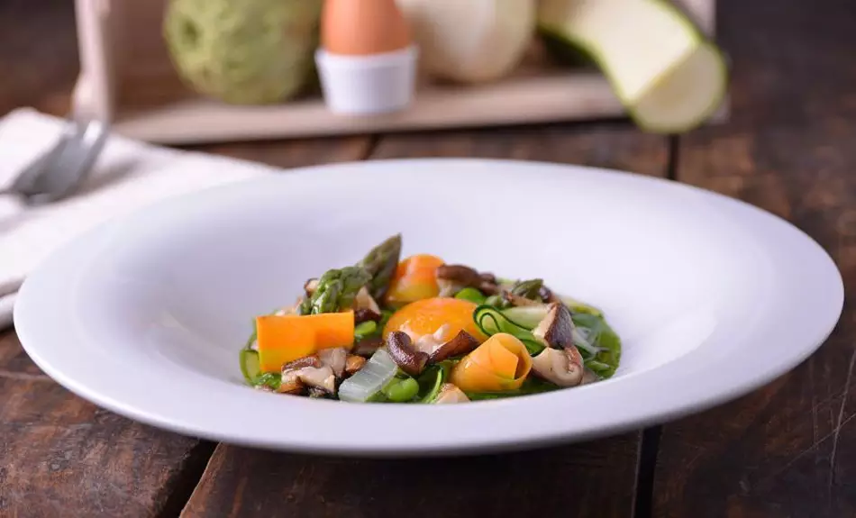 De este modo también se preservan mucho más las vitaminas que sumergiendo todas las verduras en una olla con agua y cociéndolas hasta que están blandas, este tipo de preparaciones es la que ha hecho que muchas personas piensen que no les gustan las hortalizas.En fin, que antes o después todos debemos hacer un buen plato de hortalizas variadas, y si os apetece, podéis tomar nota de la receta del Jardín de verduras de la huerta con yema de huevo y aceite de azafrán de María José San Román, seguro que sorprendéis a vuestros comensales y cambiáis a percepción que tienen algunos sobre las verduras.