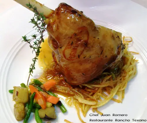 El chef del restaurante madrileño Rancho Texano, Juan Romero, nos presenta su Jarrete de cordero recental, un plato que sin duda alguna deleitará a todos los comensales que lo degusten. Una carne de calidad y el mimo proporcionado a la materia prima, darán como resultado un bocado delicioso.