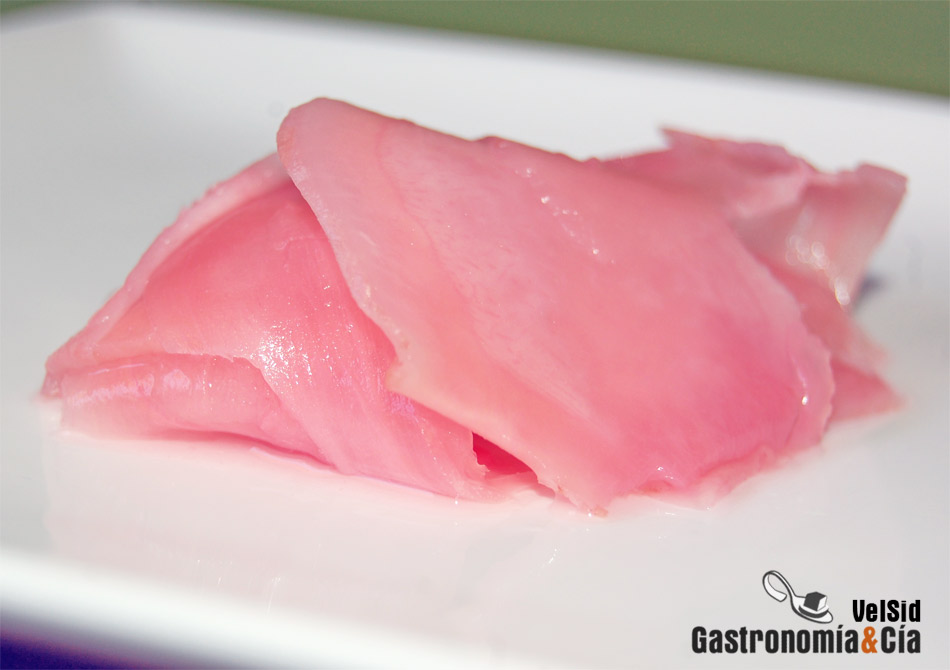 Que el jengibre encurtido sea rosa o no es lo menos importante para el paladar, pero si se quiere vistosidad en el plato ya se sabe a qué hay que recurrir. Ahora veamos lo sencillo que es disponer de jengibre encurtido hecho en casa, totalmente natural.