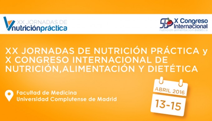 El próximo mes de abril se celebrará una nueva edición de las Jornadas de Nutrición Práctica y del Congreso Internacional, Nutrición, Alimentación y Dietética, eventos dirigidos a los profesionales de la salud y la nutrición que cumplen su vigésima edición y su décima edición respectivamente. La cita será del 13 al 15 de abril de 2016 en la Facultad de Medicina de la Universidad Complutense de Madrid.