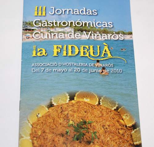 Pero de momento continuemos con el evento que en estos días acontece, las III Jornadas Gastronómicas Cuina de Vinaròs nos da la oportunidad de degustar menús a precios asequibles, desde los 9 hasta los 25 euros, bebidas e IVA incluidos. Viendo los menús que ofrece cada restaurante, además de los aperitivos, entrantes y postres, vamos a destacar el plato estrella, la Fideuà.