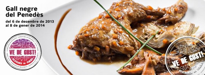 Pero no nos desviemos del tema, centrémonos en la gastronomía y en este caso en las jornadas gastronómicas del Gallo Negro del Penedès que se celebrarán en Vilafranca del Penedès hasta el próximo 8 de enero de 2014. Los restaurantes Cal Ton, Can Bellés, Casino, El Cigró d’Or, El Gat Blau, Hotel Mas Tinell (En Rima), MIquel Soria, Trefi, Racó de la Calma y Sharlotte, han elaborado un plato especial con Gallo Negro del Penedés.