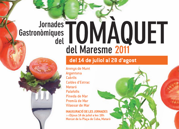 Una fruta tan adorada como el tomate, consumido principalmente como hortaliza, merece un poco más de atención, recuperar ese valor que le ha arrebatado el mercado ofreciendo tomates todo el año, pero como sabemos, son tomates que lo único que ofrecen es color a los platos. Ahora es temporada de tomates, ahora podemos disfrutar de ellos todos los días, vistiendo de color los platos, pero además aportando aroma y sabor. De promocionar sus cualidades culinarias, en estas semanas se va a ocupar el consorcio de promoción turística Costa del Maresme, pues han organizado las Jornadas Gastronómicas del Tomate del Maresme 2011.