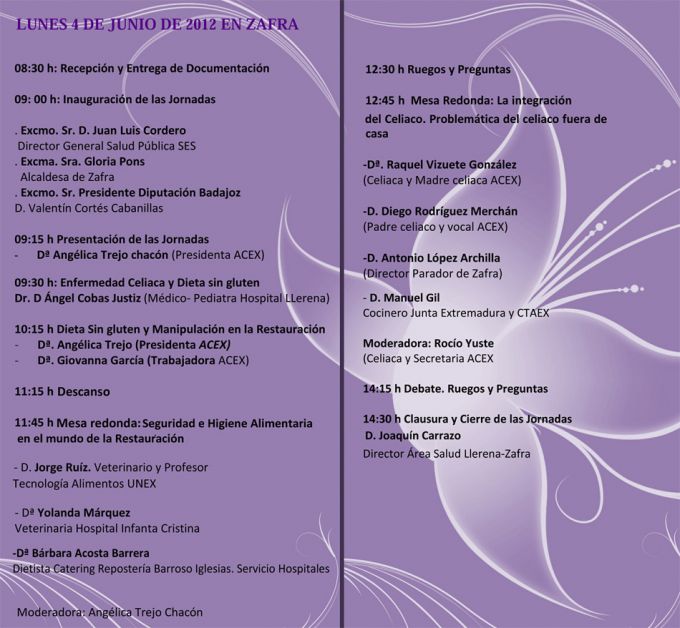 Pulsando sobre la imagen superior, ésta se ampliará y podréis consultar el programa completo de estas jornadas que incluyen charlas formativas sobre la enfermedad, la dieta sin gluten, cómo elaborar menús sin gluten, etc.