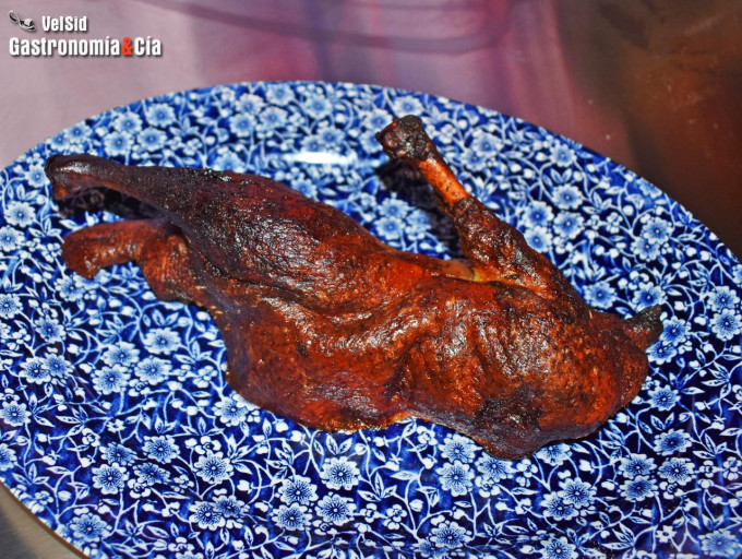 El cocinero de Shangai nos contaba que había distintas variantes del pato pekín, de hecho, en el escenario de Andorra Taste mostró dos preparaciones, mientras nos explicaba que en China, cuando piden esta especialidad culinaria, muchas veces sirven solamente la piel, pues es lo más preciado. Una vez que se ha separado la piel del cuerpo del pato, se laca con maltosa (que puede sustituirse por azúcar, glucosa, miel…) agua y sal, el proceso consiste en bañar el ave con el preparado caliente a base de cucharones. Una vez bien bañado, en China se cuelga para secarlo, pero en los restaurantes del Grupo Kao, lo ponen las cámaras del restaurante con ventilación. Así, al enfriarse, el ‘caramelo’ se vuelve a endurecer.