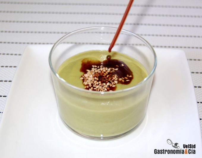 Dicho esto, vamos a ver la simplicidad de la elaboración de esta crema de verdura que podemos hacer más atractiva a los comensales si les dejamos que se sirvan ellos la salsa de soja con unas pipetas desechables.