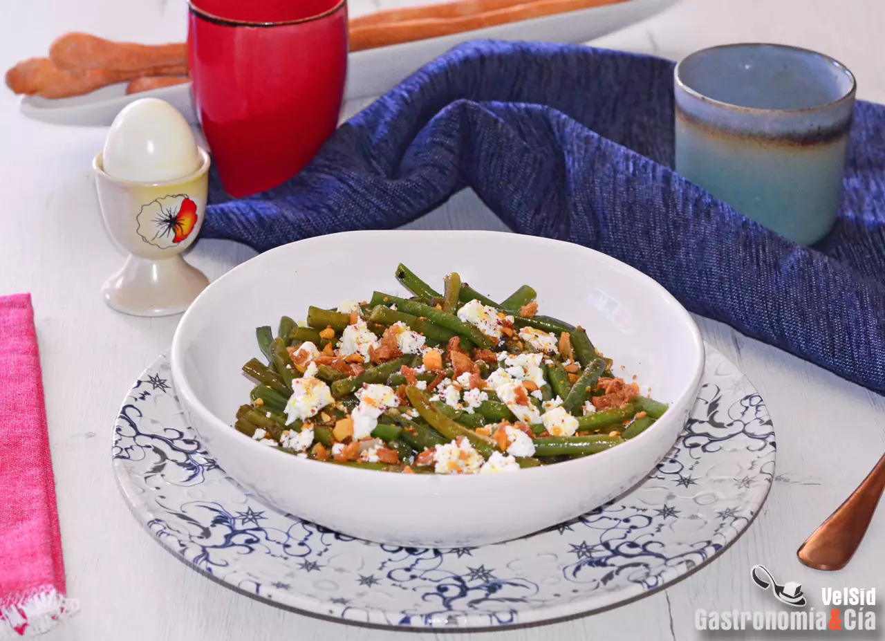 Así que tomad nota de estas judías verdes guisadas con queso feta y dukkah de avellanas, porque es una receta que sorprende y siempre se repite exactamente igual o con algunas variantes, por ejemplo, con distintos aderezos, con otros frutos secos y especias, con un queso más curado… De momento, tenéis que probar esta sencilla versión que veréis que es muy fácil de hacer, además, estas judías tiernas redondas se cocinan en menos de 20 minutos. ¿Qué tal hacerlas hoy para cenar?