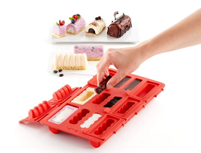 Viendo el vídeo os habrá quedado más claro cómo se utiliza el molde para hacer pastelitos rellenos de mousse, veréis, también que las cavidades tienen distintas formas, así se obtienen diferentes resultados. ¿Os gustan? Pues podéis conocer más detalles de este molde de silicona platino de Lékué en su web, ya sabéis que esta marca hace utensilios de calidad.