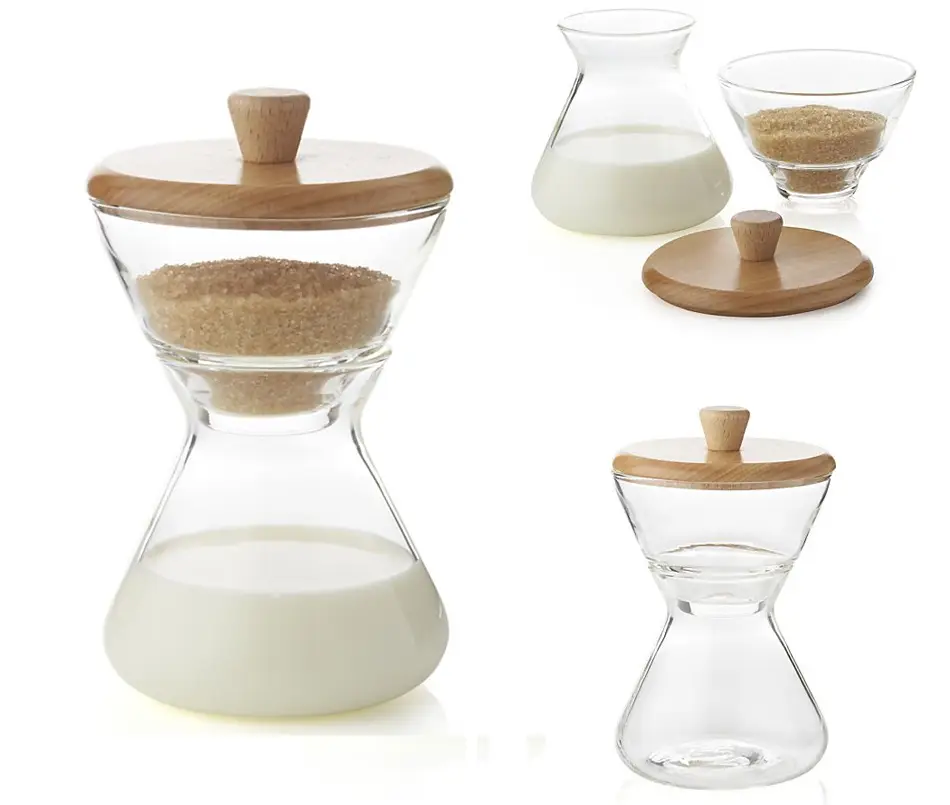 Se llama Handblown Cream & Sugar Set, y se define como el equilibrio perfecto entre forma y funcionalidad. Es evidente que este complemento está inspirado en el diseño de la icónica cafetera Chemex, es elegante y fino, y además funcional. Como dice su nombre, este accesorio para el servicio del café está pensado para llevar el azúcar y la leche (o crema de leche) a la mesa.