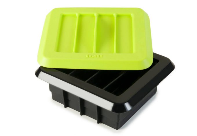 El molde para hacer barritas energéticas tiene unas medidas de 15 x 7 centímetros, y está disponible en dos combinaciones de color, verde y negro o naranja y gris. Podréis encontrarlo en vuestra tienda habitual de utensilios de cocina si trabaja con la firma guipuzcoana Ibili.