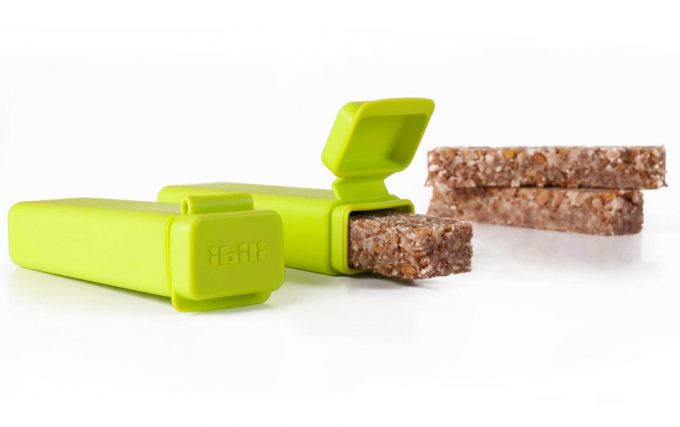 En las imágenes podéis ver en qué consiste este kit, son moldes apilables compactos (por lo que ocupan poco espacio) que dan forma a las barritas para después presentarlas envueltas o en los estuches reutilizables, éstos nos parecen muy prácticos para llevar las barritas en el bolso, en la mochila o en la bolsa de deporte, lástima que el kit sólo lleve dos. Tal vez después vendan por separado estos estuches.