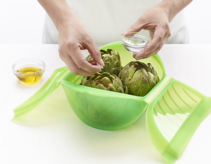 La marca española de utensilios de cocina de silicona Lékué siempre intenta satisfacer la demanda de la sociedad actual, sus productos son conocidos y apreciados a nivel internacional, siendo (quizá) el producto estrella el estuche de silicona para la cocción al vapor en el microondas, del que dispone de distintos modelos y tamaños en su catálogo. Nosotros éramos de los reacios a cocinar en el microondas, pero de un tiempo a esta parte hemos comprobado que algunas verduras las podemos cocinar en menos tiempo y conservando más sus nutrientes utilizando este sistema, así que podemos recomendarlo tanto si cocináis para uno como si lo hacéis para toda la familia.