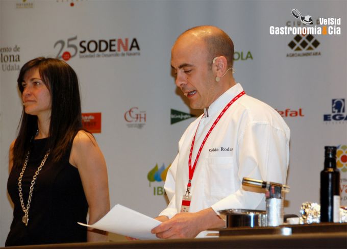 Al parecer, Koldo Rodero es el artífice del lanzamiento de esta línea cosmética natural, que como podemos ver en su web, ya presentó en 2007-2008. Le acompañaba en el escenario de Baluarte la bióloga Ana García, quien explicó las características de estos cosméticos a la vez que nos hacía probarlos en nuestra piel con las pequeñas muestras que repartieron. Incluso el cocinero nos invitó a probarlos, pero no nos confundamos, ni la emulsión de alcachofa sabe a alcachofa ni la loción facial de piquillo huele a pimiento.