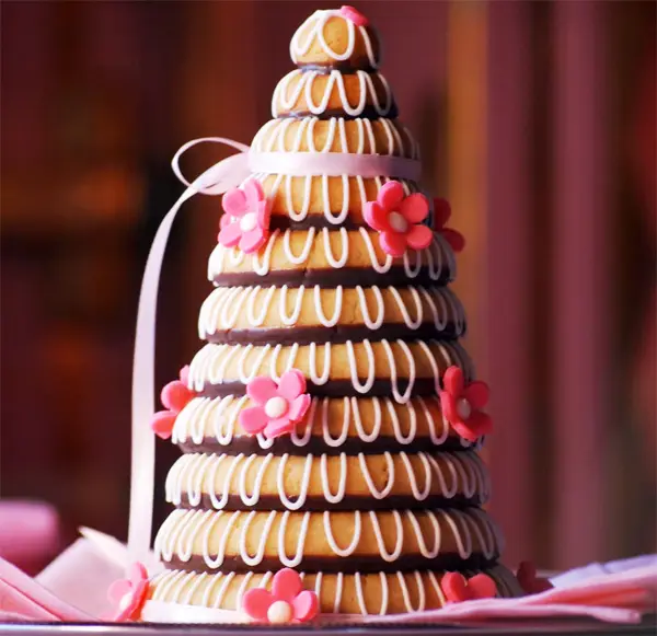 El Kransekake es un postre tradicional escandinavo, más bien un pastel que como podéis ver en la foto, es muy voluminoso. Es un pastel para celebraciones, bodas, cumpleaños o fiestas navideñas, y a pesar de la compleja apariencia, es muy fácil de hacer.