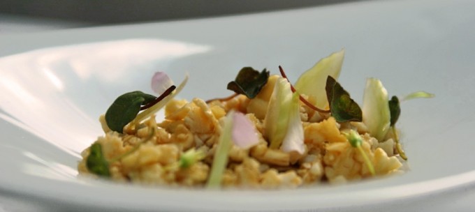 En la sección de Recetas de los Chefs hoy tenemos una creación del cocinero de La Casona del Judío de Santander (Cantabría), se llama La coliflor que creció a la sombra del nogal, y como es habitual, Sergio Bastard explica su fuente de inspiración y argumenta el por qué de cada elemento del plato. Evidentemente el ingrediente principal es la coliflor, y para respetar el producto al máximo y ofrecer el sabor puro, no la cocina, simplemente la baña con un jugo de cáscara de nuez verde.