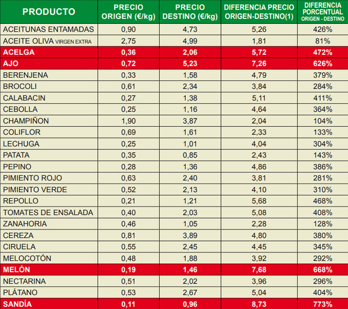 Cada año ocurre lo mismo, se aprovecha la demanda de la fruta estrella del verano para sacar la mayor rentabilidad posible, de ahí que algunas cooperativas hayan denunciado la campaña, ya que el precio en origen ha sufrido una bajada del 80% desde que se inició la temporada. Y como se podía prever, en segundo lugar de este ranking de las diferencias especulativas de precio aparece el melón con una diferencia porcentual del 668%, lo que supone un incremento de la diferencia de precio de un 239% con respecto al mes de julio.