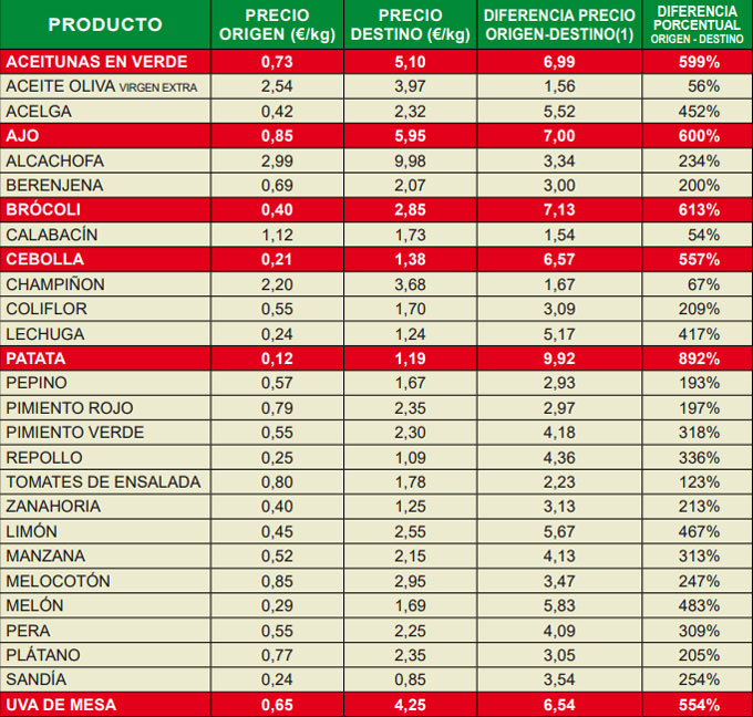 Como cada principio de mes, la Coordinadora de Organizaciones de Agricultores y Ganaderos (COAG) ha publicado los datos relativos al IPOD (Índice de Precios en Origen y Destino de los Alimentos), indicador que nos muestra la diferencia entre lo que se paga al agricultor por algunos productos básicos de la cesta de la compra, y lo que los consumidores pagamos en el mercado.