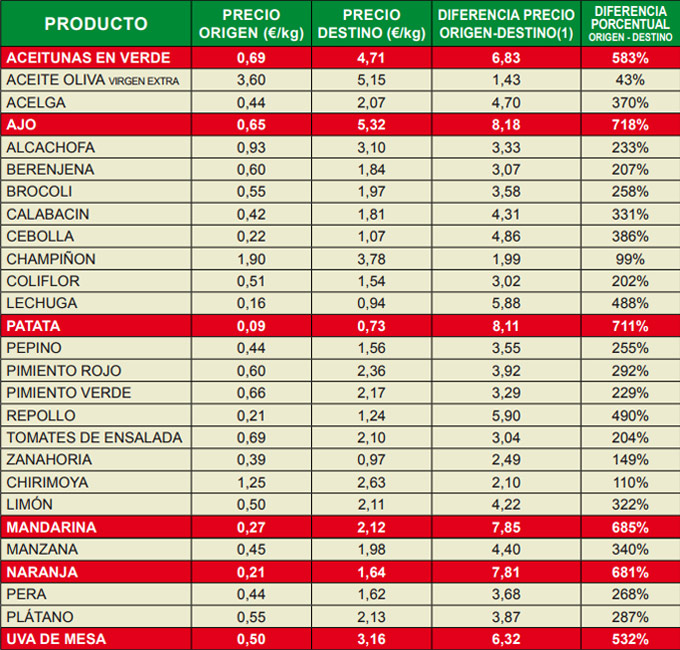 En el campo el precio se ha mantenido en 0’65 euros por kilo, en el mercado el coste medio se ha incrementado en un céntimo alcanzando los 5’32 euros por kilo, según los datos del IPOD los consumidores hemos pagado 8’18 veces el valor de los ajos en el campo. Lo cierto es que desde el mes de junio los ajos han sido protagonistas en este ranking de las diferencies de precio especulativas, quizá en el mercado podemos encontrar ajos a precios más económicos, pero es muy posible que se trate de ajos chinos, cuya calidad y sabor nada tienen que ver con el ajo español.