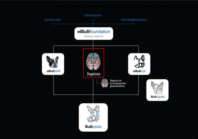 Y ahí esta Sapiens, definido como una metodología para comprender cosas, tareas, proyectos, marcas, empresas, disciplinas… Como comentábamos, explicarlo no es fácil y entenderlo también puede costar un poco, por eso vamos a recurrir a esta publicación de la presentación de Sapiens el pasado mes de marzo, de la mano de Ferrán Adrià, quien empezó exponiendo un gráfico sobre cómo se organiza y de qué se compone elBulliFoundation, entidad que tiene tres objetivos principales como seguramente ya sabéis, aportar a la sociedad conocimiento (educación), innovación y apoyo al emprendimiento.