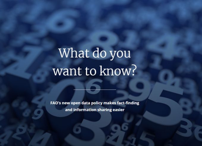 La FAO (Organización de las Naciones Unidas para la Alimentación y la Agricultura) ha puesto en marcha una nueva política de datos abiertos sobre agricultura y alimentación, con ella se espera facilitar la búsqueda de datos y el intercambio de información. La organización comenta que, en lo referente a datos sobre agricultura y alimentación, es líder mundial en conocimiento, ya que desde hace años, sus expertos trabajan diariamente para recopilar, validar y difundir datos e información sobre estas cuestiones.