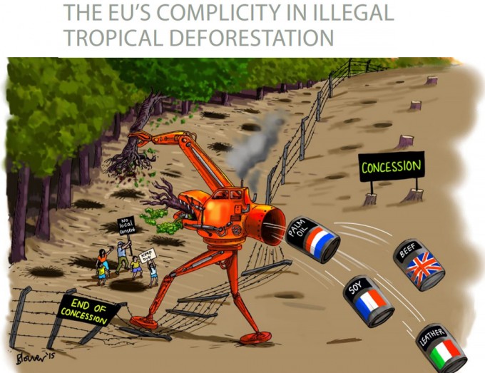 Italia es uno de los mayores consumidores de la UE de mercancías procedentes de lugares donde se ha deforestado ilegalmente, es responsable de la mayor parte del consumo de cuero de animales que se han criado en zonas deforestadas. Francia acapara la mayoría de la soja cultivada en tierras deforestadas ilegalmente, soja con la que se alimenta al ganado. Reino Unido es el mayor importador de carne y Países Bajos y Alemania son los mayores consumidores de aceite de palma que se ha producido en zonas deforestadas ilegalmente.