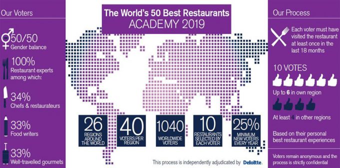 El próximo 25 de junio se celebrará la gala de presentación de la Lista de los 50 Mejores Restaurantes del Mundo 2019 en el complejo Marina Bay Sands de Singapur, recordemos que esta gala cumple su decimoctava edición y se presenta con novedades, como que los ganadores no podrán volver a ser número uno, quedando excluidos de la votación y del ránking, pero siendo incluidos en el grupo Best of the Best.