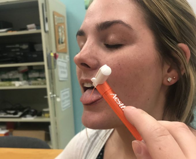 En el ensayo participó un grupo de 111 catadores que fueron divididos en dos grupos en base a la sensibilidad baja o alta que tenían en la lengua, ambos grupos cataron dos tipos de chocolate negro, pero en muestras con diferentes texturas. A los participantes se les revisó la lengua en busca de sensibilidad física utilizando un dispositivo (el que aparece en la foto 2) similar a un cepillo de dientes, con el que se midió la capacidad que tenían para diferenciar las variaciones de presión que se les aplicaba en la lengua. Posteriormente se les preguntó cómo habían percibido las diferentes texturas de las muestras de chocolate que probaron.