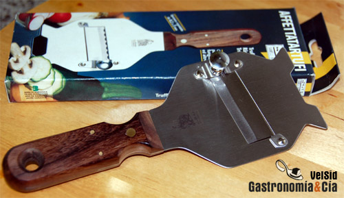 Ya lo veis en la foto, es de plástico negro y verde, y se complementa con las tres cuchillas de acero inoxidable, una para laminar y dos para prensar los dientes de ajo con distinto tamaño. Como todavía no lo hemos encontrado en comercio, no sabemos qué precio podrá tener, pero seguro que serán menos de 15 euros.