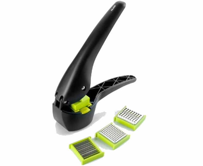 En lugar de disponer de dos cavidades, en este prensa y laminador de ajos se cambian las cuchillas según la necesidad. El precio de este utensilio, que se encuentra aún con más facilidad que el de Jamie Oliver, dado que es una marca española, ronda los 15 euros.