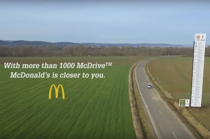La última campaña publicitaria de McDonald’s en Francia arremetía contra Burger King en un tono humorístico calificado como humor negro. El spot tenía como finalidad promover el servicio drive-thru de los restaurantes McDonald’s, es decir, poder realizar el pedido sin tener que bajar del coche. En el vídeo podéis ver que se destaca especialmente la escasa presencia de establecimientos Burger King, teniendo que recorrer muchos kilómetros para poder encontrar uno.