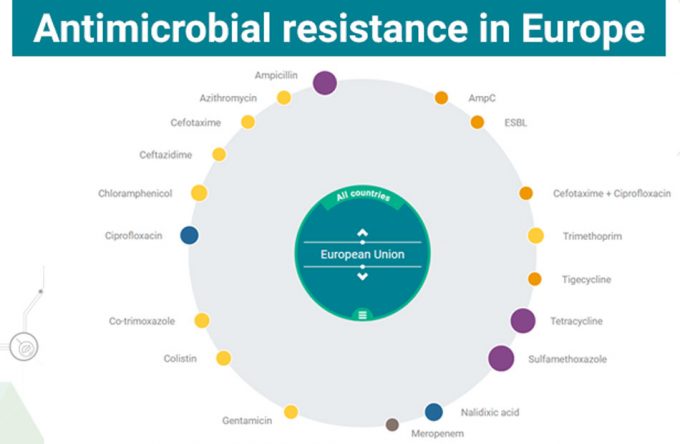 En la Unión Europea el ECDC trabaja con la EFSA y los países miembros para mejorar el control y detección de este tipo de microorganismos resistentes a los fármacos, en un esfuerzo para combatir la creciente y persistente amenaza de las infecciones zoonóticas resistentes a los antibióticos. En el documento se incluyen indicadores clave de los resultados que pueden ayudar a los países comunitarios en la evaluación del progreso de la reducción del uso de antibióticos en los animales y en la lucha contra la resistencia que generan los microorganismos a los fármacos.
