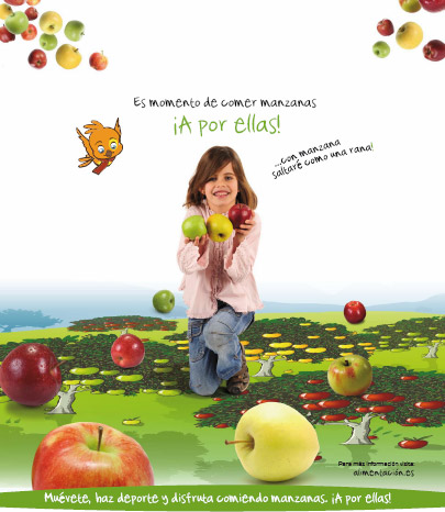 Las manzanas están en su mejor momento… ¡A por ellas! es el mensaje que desde Alimentacion.es lanzan para promover el consumo de esta fruta, procurando además atraer a la población infantil, como podéis ver en la imagen superior.