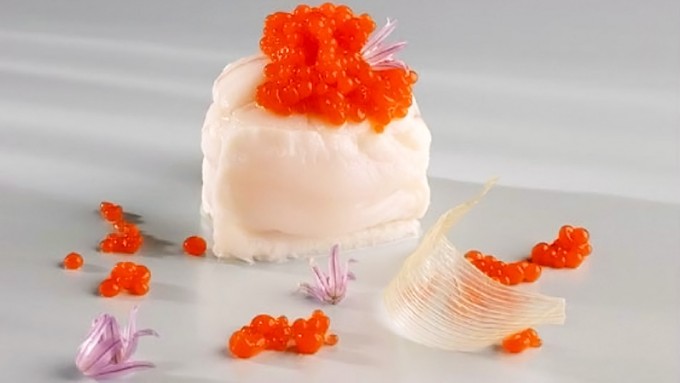 Vieira asada con tocino ibérico y alcachofas tiernas de Nacho Manzano