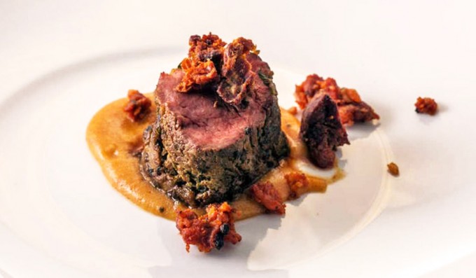 Solomillo de cerdo ibérico con puré de matanza de Toño Pérez
