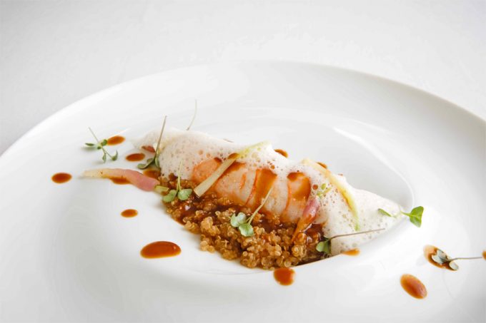 El chef selecciona unos minivegetales que se someten a una breve cocción para disfrutarlos al dente y con su sabor, y la estrella de este plato es la cigala que se marca simplemente a la plancha y se termina en el gratinador para posarse, en el plato, sobre la cama de quinoa y vestirse con un aire de una purrusalda tradicional. El resultado de esta receta de cigala con minivegetales y quinoa de Francis Paniego es elegante a primera vista, y seguro que sabroso y equilibrado en su degustación, con muchos sabores reconocibles aplicados a un pseudocereal que se ha puesto de moda en nuestro país por considerarse un ‘superalimento’ (recordemos que esto no es cierto), donde actualmente también se cultiva. Si queréis llevar este plato a vuestra mesa, tomad nota de la receta a continuación.