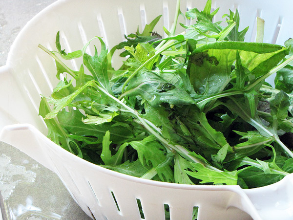 Unas gotas (sólo unas gotas) de lejía en el último lavado es una precaución adicional que elimina la posible contaminacón bacterina que pudiera haber en las verduras crudas.