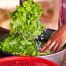- Lavar las hierbas como el cilantro, el perejil, el apio y la menta en manojos pequeños, dándoles vueltas hasta que todas las ramas queden limpias.