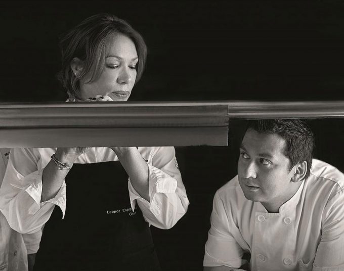Leonor Espinosa es una cocinera colombiana que abandonó su trabajo en el mundo de la publicidad para dedicarse a su gran pasión, la cocina. Empezó a trabajar frente a los fogones en 1998 y desde entonces ha mantenido un progresión y evolución constante con la que ha conseguido ofrecer a sus comensales experiencias únicas y excepcionales. Inauguró el restaurante en 2005, que inicialmente se presentó con el nombre de Leo Cocina y Cava, pero posteriormente pasó a llamarse Restaurante Leo.