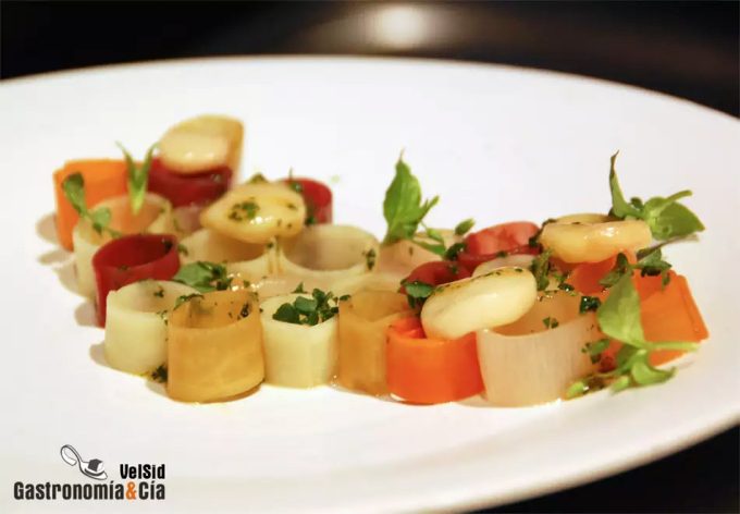 Foto 1 | Burrata con tomates asados y berenjena encurtida