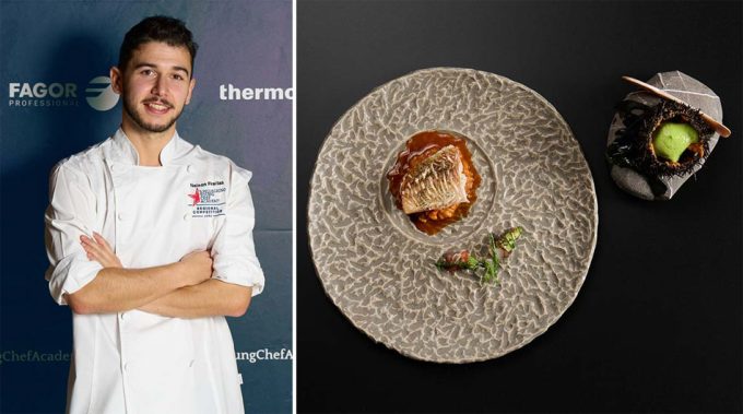 Os adelantamos que este año no hay participante español, la semifinal de los Países Ibéricos la ganó un portugués, así que será el representante de nuestra región. Pero hay que decir que este joven cocinero trabaja en el restaurante que Martín Berasategui conduce en Lisboa, él es Nelson Freitas y es cocinero en el restaurante Fifty Seconds, reconocido con una estrella Michelin. El plato que presentó en este certamen es un Salmonete crujiente con erizo de mar y ajo negro casero.