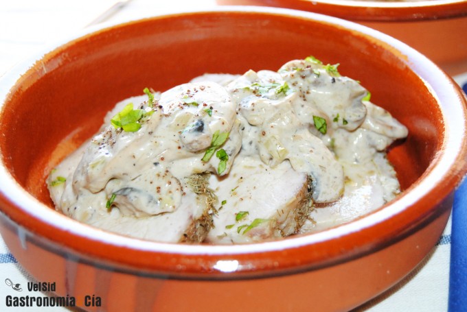 Por eso os comentamos que esta receta Lomo a la sal con setas a la crema es un buen plato principal para cualquier día de la semana, aunque haya poco tiempo para cocinar. Si tenéis el lomo ya hecho, sólo habrá que calentarlo un poco, por ejemplo introduciendo las cazuelitas en el horno, y añadiendo un hilo de aceite de oliva virgen extra. También se puede servir a temperatura ambiente (no frío), si no os gusta la comida muy caliente, la salsa cremosa y las setas equilibrarán la temperatura del plato. En casa se dan los dos casos, unos lo queremos bien caliente y otros prefieren que esté templado.