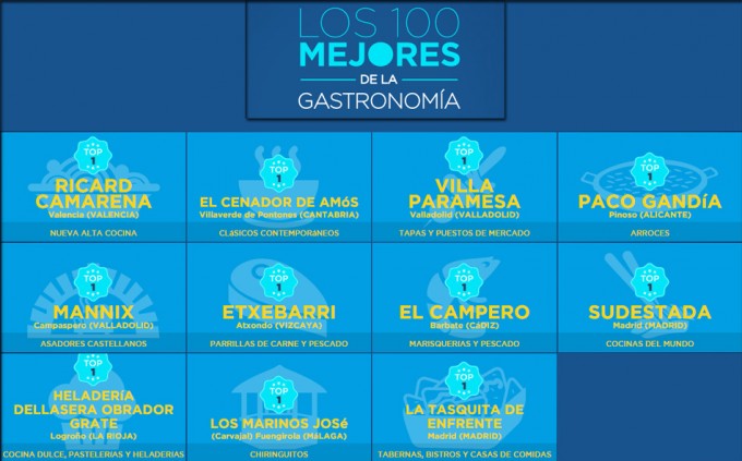 El año que viene tendrán que incluir los food trucks o camiones de comida ¿no?, quizá se incluyan entre los puestos de mercado. En fin, nos sigue pareciendo una clasificación un poco coja, pero ahí os la dejamos para que valoréis vosotros. Si queréis ampliar información podéis acceder a la web de Los 100 Mejores de la Gastronomía.