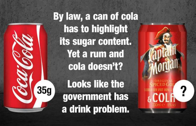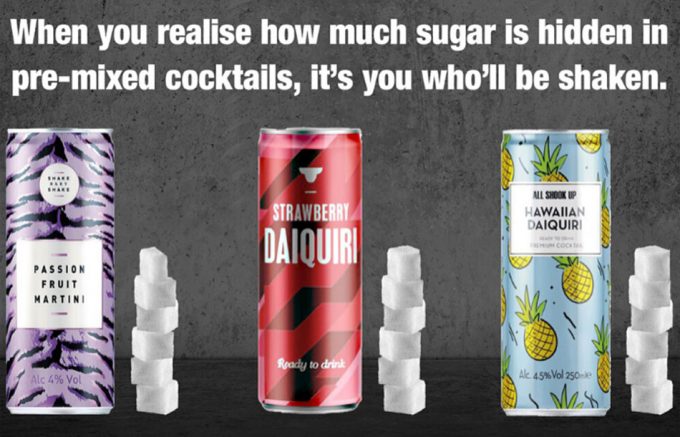 Action on Sugar comenta que los consumidores no son conscientes de la gran cantidad de azúcar y calorías que recibe su organismo con el consumo de este tipo de bebidas espirituosas premezcladas y cómo contribuyen al aumento del sobrepeso y la obesidad, al riesgo de sufrir diabetes tipo 2, caries, daño hepático e incluso diferentes tipos de cáncer. Por ello, se pide al gobierno del país que demuestre su compromiso con la salud, la prevención y la reducción de las desigualdades, interviniendo en la situación y tomando el control, no sólo en la industria de los alimentos y las bebidas, también en la industria de las bebidas alcoholicas.