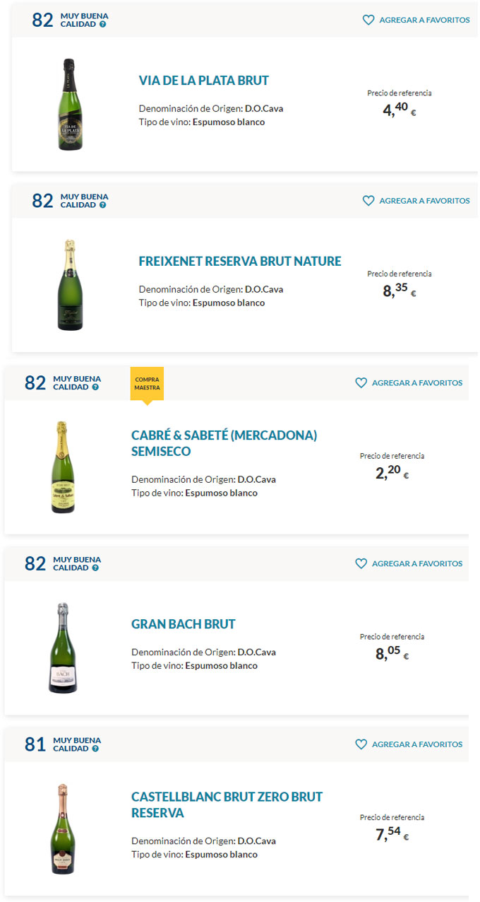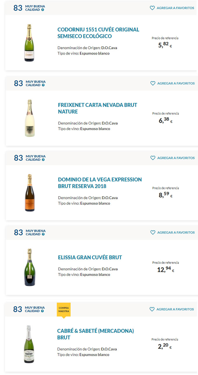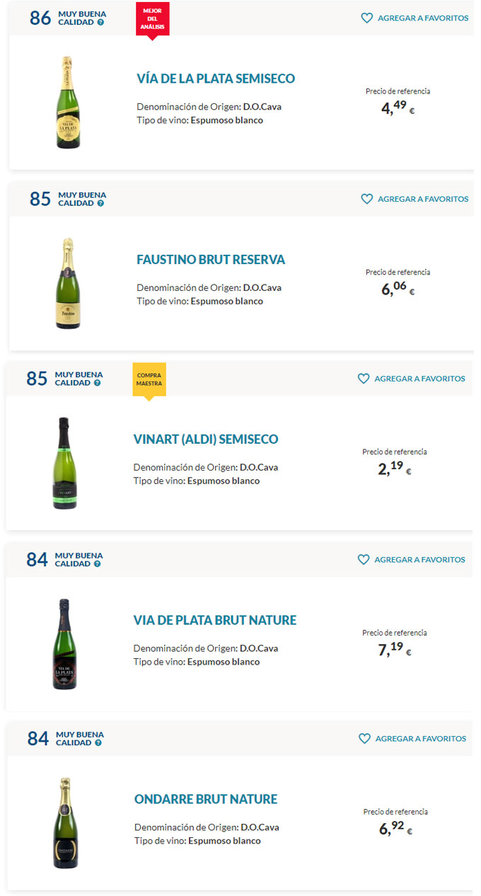 Hasta aquí tenéis los 25 cavas mejor valorados, ya habéis visto que hay precios muy variados y que no siempre es mejor el vino más caro. Quizá pensáis que el titular que ha proporcionado la OCU de los mejores cavas por menos de 3 euros es un poco confuso, porque los vinos espumosos que se han analizado, como hemos comentado, cuestan de dos a doce euros, pero hay que quedarse con el mensaje de que se puede brindar en estas fiestas navideñas con muy buenos cavas por menos de 3 euros.