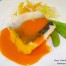 Para hacer la crema de azafrán, poner a calentar la nata con las hebras de azafrán a unos 80º C tapado durante 40 minutos, colar y reservar.