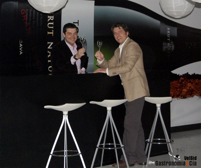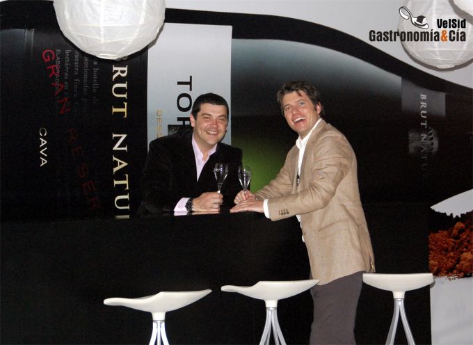 Lucas Payá un gran sumiller que ha trabajado durante varios años en el Restaurante elBulli de Ferrán Adrià (a la derecha en la foto), se encontraba en el pabellón Intervin dentro del Salón de Alimentaria, concretamente en el stand de un gran amigo, Paco Torelló, responsable de las Bodegas Torelló.
