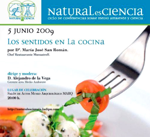 Mª José San Román impartirá la conferencia Los Sentidos en la Cocina el próximo viernes 5 de junio en Alicante. El Museo Arqueológico Provincial de esta ciudad ofrece una serie de conferencias dentro del ciclo Natural es Ciencia, un espacio abierto a todos con la finalidad de ofrecer un foro de divulgación y debate en torno a la actualidad medioambiental.