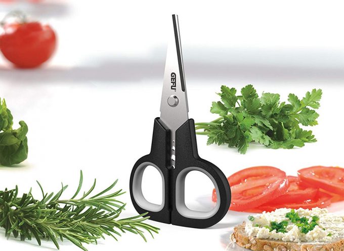En cuanto a las tijeras, cuya longitud es de 12 centímetros, son de acero inoxidable de calidad e incluyen el deshojador, un accesorio que últimamente parece ser bastante requerido, pues facilita la tarea de separar las hojas de los tallos de las hierbas aromáticas. En el caso de las tijeras, tiene los orificios para deshojar entre las asas, y hay tres diámetros finos, que se podrán utilizar con el romero y el tomillo, aunque quizá si son silvestres tienen las ramitas más gruesas, con el perejil, el cilantro, el perifollo, la albahaca…