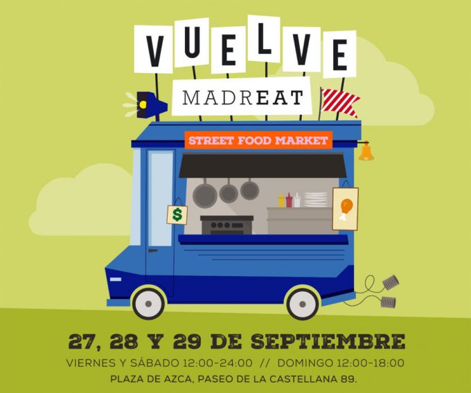 La previsión para celebrar una nueva edición de MadrEat, el mercado de comida callejera de Madrid (Street Food Market), era hacerlo el pasado fin de semana, pero el mal tiempo provocó el aplazamiento a este fin de semana, así que este festival de comida se va a celebrar los días 27, 28 y 29 de septiembre, y será en su ubicación habitual, en el complejo Azca. Hay que decir que este evento gastronómico nació en el año 2014, y que se han celebrado varias ediciones, pues estaba establecido un mercado el tercer fin de semana de cada mes, pero por cuestiones ajenas a la organización, ha estado dos años sin repetirse.