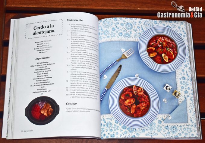 Hay detalles que muchas veces se pasan por alto, pero para los amantes de los libros debemos decir que cuando ‘Manchamanteles‘ caiga en vuestras manos, percibiréis que es un libro consistente, firme, de tacto suave, con tapa blanda, agradable de manipular, con hojas ‘con caída’… Llamadnos románticos, pero de los libros nos importa todo, además de su contenido. Y qué decir de las imágenes, de los platos de Marta Miranda, que provocan la salivación e invitan a ponerse el delantal. Y aún más, tienta totalmente a quienes no disponen de una olla de cocción lenta, a comprarla, para poder probar las recetas.